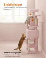 Cuvinte cheie SEO: Ansamblu de joaca pisici, turn joaca pisici, stalpi zgariat, platforme pisici, casa pisici, hamac pisici, joaca pisici, structura stabila, zgariere pisici, casute pisici, accesorii pisici.