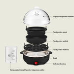 Datorita sistemului sau simplu si eficient, poti prepara pana la 7 oua simultan, economisind timp si energie. Fierbatorul este echipat cu functii de fierbere si posare, avand o tavita speciala pentru omleta si posare, astfel incat sa iti personalizezi preparatele exact asa cum iti doresti.