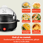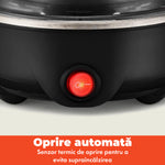 Aparat electric NextWave® pentru fiert oua – 360W, capacitate 7 oua, fierbere moale/medie/tare, functie posare si omleta, tava inclusa, oprire automata, carcasa cu inox, Negru