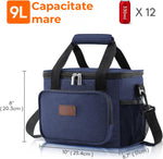 Geanta termoizolanta 9L NextWave® – portabila, cu compartiment spatios si buzunare laterale, curea ajustabila si maner dublu, pastreaza alimentele si bauturile reci sau calde pana la 12 doze de 330 ml, ideala pentru picnic, birou si calatorii, Albastru