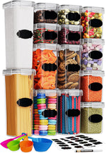 Set 14 recipiente depozitare alimente NextWave® – plastic alimentar transparent fara BPA, capace negre etanse, utilizabile in cuptor microunde, congelator si masina de spalat vase, 4 dimensiuni mixte (0.8L, 1.4L, 2L, 2.8L), cu etichete si marker inclus