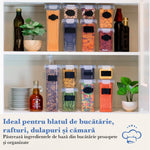 Pastreaza-ti bucataria mereu organizata si alimentele proaspete cu setul de 14 recipiente depozitare NextWave®, realizate din plastic alimentar premium, fara BPA, sigur pentru sanatatea familiei tale. Aceste caserole sunt ideale pentru depozitarea fainii, zaharului, cerealelor, orezului, pastelor, biscuitilor, leguminoaselor si a altor alimente uscate, dar pot fi utilizate si pentru resturi de mancare sau produse refrigerate.