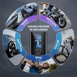 Compresor Auto Portabil Digital NextWave cu accumulator 25000mAh, 150PSI/10 Bari, Baterie Reincarcabila, pentru Anvelope Auto, Motociclete, Tubliss Enduro, Biciclete si Mingi, 4 moduri inteligente de unflare, oprire automata, power bank, lumina led, Negru
