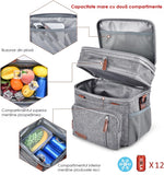 Geanta termoizolanta pranz 15L NextWave® – dublu compartiment stratificat, impermeabila si anti-scurgeri, material Oxford rezistent cu interior PEVA, pastreaza alimentele si bauturile reci sau calde, ideala pentru birou, picnic si calatorii, Gri