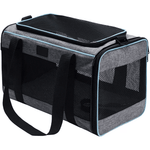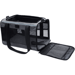 Geanta pentru transport animale mici NextWave®, pisica, caine, iepure, din panza, 45x28x28 cm, Baza rezistenta cu covoras, Usor de transportat, Plasa respirabila, Gri