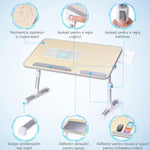 Masa laptop pliabila si reglabila NextWave® – stand multifunctional portabil pentru pat, canapea si birou, 60x40 cm, cu suport pentru tableta si telefon, utilizare ca masa mic dejun, birou de studiu sau suport de scris, design ergonomic si usor de depozit
