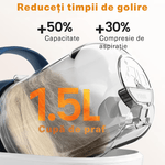 Functie de aspirare integrata: Colecteaza pana la 99% din parul tuns direct in recipientul aparatului, prevenind raspandirea acestuia in locuinta si facilitand curatenia.