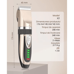 Masina de tuns animale de companie fara fir, Profesionala pentru caini, pisici, 2 viteze, zgomot redus, Afisaj nivel baterie reincarcabila, Acumulator trimmer 2000mAh, cablu usb, Silentioasa, Auriu
