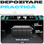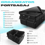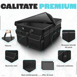 Organizator portbagaj auto pliabil NextWave®️, capacitate mare 55×40×26 cm, compartimentare cu separator detasabil, 2 placi de baza, chingi de fixare, capac inclus, material poliester rezistent