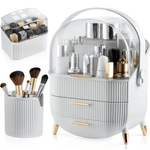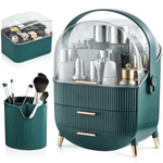 Organizator pentru cosmetice si bijuterii NextWave®, spatiu depozitare cu 2 sertare, vitrina, cutie pensule si rujuri, multifunctionala
