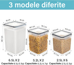 Fiecare recipient este prevazut cu capac sigilabil si garnitura ermetica, care protejeaza alimentele de umiditate, praf si insecte. Designul transparent si stivuibil iti permite sa economisesti spatiu si sa identifici rapid continutul, fara a fi nevoie sa deschizi cutia.