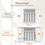 ✔ Se potriveste in sertare de dimensiuni diferite datorita sistemului extensibil