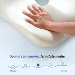 Fabricata din spuma cu memorie de inalta densitate, perna se adapteaza perfect formei corpului, oferind sustinere optima si reducand disconfortul cauzat de sezutul prelungit. Designul sau ergonomic sprijina o postura corecta, fiind ideal pentru persoane care petrec multe ore la birou, soferi profesionisti sau pentru cei aflati in recuperare.