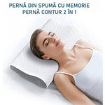 Perna ortopedica pentru dormit NextWave®, Spuma cu Memorie ergonomica pentru Gat si Suport Cervical, Ideala pentru dormitul lateral, spate sau stomac, Husa detasabila lavabila, Fermitate Medie