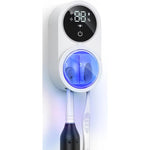 Sterilizator UV portabil BeGenius® pentru 2 periute de dinti, cu suport inteligent, uscare automata, senzor deschidere-inchidere, montaj fara gauri, eficienta 99,99%, dezinfectare continua 24/7, display HD, Alb