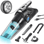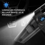 Aspirator Auto si Compresor Portabil Multifunctional cu Acumulator, Functie de Aspirare Umeda si Uscata, Umflare Roti cu Afisaj de Presiune, Lumina LED, Incarcare prin Priza de Bricheta Auto USB C, 32.000 rot/min, Putere 120W, Negru