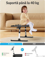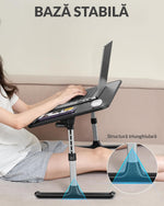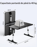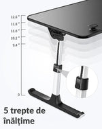 Suport laptop reglabil NextWave®️, masa pliabila pentru birou, pat sau canapea, 5 niveluri de inaltime si 4 unghiuri de inclinare, bara anti-alunecare si pad ergonomic, material MDF + aluminiu, dimensiuni 52,1×30×23,9 cm, Negru