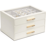 Cutie de bijuterii, organizator cu capac transparent, spatiu de depozitare 3 sertare pentru coliere, inele, cercei, lantisoare, bratari, interior catifelat, compartimentare multipla, piele ecologica neagra, 25 x 18 x 15 cm