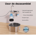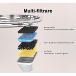 Dispenser apa automat tip fantana pentru pisici si caini NextWave®, cu fereastra mare pentru nivelul apei, purificare si filtrare prin carbune activ, otel inoxidabil, ultra-silentiosa, USB, adaptor priza, capacitate 3.2L