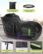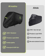 Datorita benzilor reflectorizante integrate, motocicleta ta ramane vizibila pe timp de noapte, sporind siguranta in parcare. Curelele de fixare si tivul elastic asigura o prindere ferma si stabila, chiar si in conditii de vant puternic.