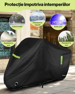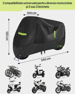 Husa motocicleta NextWave® XXL 245×104×125 cm – impermeabila, rezistenta la vant si praf, protectie UV, cu benzi reflectorizante si curele de fixare, compatibila si pentru 2–3 biciclete