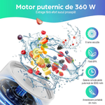 - Mini Blender Electric Portabil NextWave™, Multifunctional, Auto-curatare, Autonomie Mare, Recipient detasabil cu capac, Baterie reincarcabila 6000mAh, 20.000 RPM, 240W, 650 ml, alb