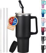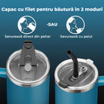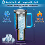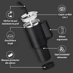 NextWave® Cana termoizolanta 1180 ml cu maner si capac etans – inox premium, pereti triplu izolati, pastreaza bauturile reci 34h si calde 10h, cu paie reutilizabile si perie de curatare, baza anti-alunecare, neagra