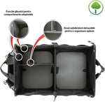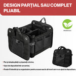 - Organizator portbagaj auto pliabil NextWave®️ L, compartimentare personalizabila cu subdivizor detasabil, 2 buzunare mari fata si spate, 8 buzunare laterale, baza rigida, material Oxford rezistent la apa, dimensiuni 60×37 cm