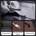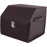 Cu dimensiuni generoase de 38x31x30 cm, acest organizator negru se pliaza cu usurinta atunci cand nu este utilizat, economisind spatiu si fiind simplu de depozitat. Designul sau elegant si culoarea maro se potrivesc armonios cu interiorul oricarui vehicul, adaugand un aspect de ordine si profesionalism.