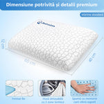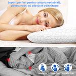 Perna ortopedica din spuma cu memorie cu gel BeGenius, Husa detasabila cu 2 zone termice, ergonomica ventilata pentru Gat si Suport Cervical, Ideala pentru dormitul lateral, spate sau stomac, 60x40x12 cm, fermitate ferma