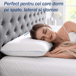Perna ortopedica pentru dormit NextWave®️, Spuma cu Memorie cu gel ventilata, Husa detasabila cu 2 zone termice, ergonomica pentru Gat si Suport Cervical, Ideala pentru dormitul lateral, spate sau stomac, beneficii medicale