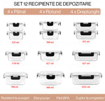 Set 12 Caserole Alimentare din sticla NextWave, Capace Etanse, Depozitare Frigider si Congelator, Potrivite pentru Microunde, Fara BPA, Inchidere cu 4 Clipsuri, Usor de Curatat, Transparent